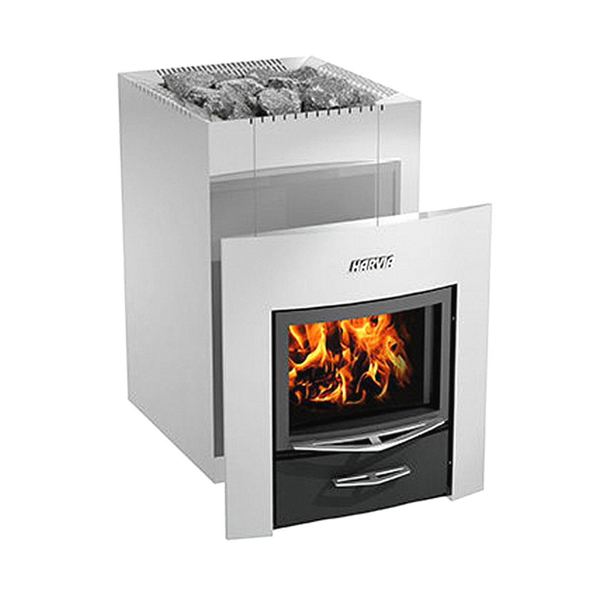 Дровяная каменка Harvia Steel DUO имеет лаконичный дизайн, обеспеченный прямыми строгими линиями корпуса выполненного из нержавеющей стали или окрашенного в черный цвет, которые подчёркивают элегантность и безупречность стиля.