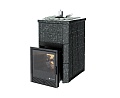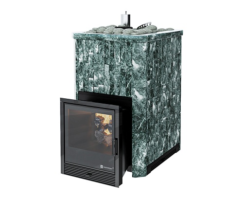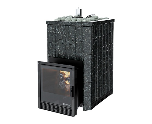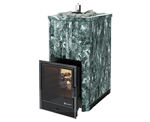 Печь оснащена съемной закрытой каменкой, топка печи футерована шамотными плитами. В стандартную комплектацию печи входит индивидуально разработанный кожух из натурального камня толщиной 40 мм с регулируемой конвекцией.